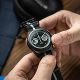 The Rally 797 is a durable, lightweight titanium chronograph built for those who value precision, performance, and clarity. Now featuring an updated dial layout and redesigned hands for improved legibility, it’s a tool watch with everyday wearability.