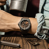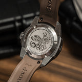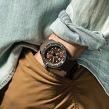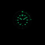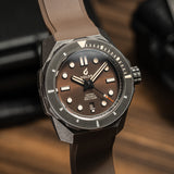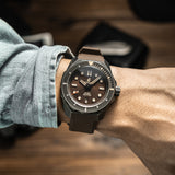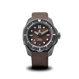 This model features a sunburst brown dial, custom embossed triple lock screw-down crown, and our very own Druber® fluoroelastomer rubber strap. Old Radium Super-LumiNova® provides powerful legibility underwater along with its high double dome sapphire crystal. Focus on the dive, your time is in good hands.