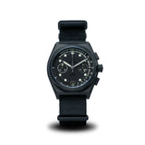Crafted with an ultra-tough yet lightweight 38mm titanium case, the Field Medic Stealth is powered by the reliable SII VK64 Mecaquartz Chronograph movement. The watch face is protected by a flat sapphire crystal lens, providing resilience against impact and scratches. Its clearly marked indexes and specialized pulse-tracking functionalities allow for quick and efficient monitoring of vital signs.