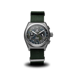 This camo-green is strategically designed to blend seamlessly with natural surroundings, ensuring that you remain virtually undetectable in forests, jungles, or any green-themed environment. The ultra-tough & super light 38mm titanium case and is powered by a SII VK64 Mecaquartz chronograph movement.