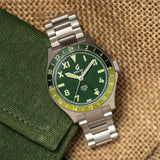 Crafted from tough stainless steel, this 40mm compact powerhouse is built for adventure. Its fixed dual-tone bezel, graduated for 24 hours, allows you to track two time zones simultaneously—a perfect feature for travelers and explorers alike.