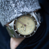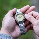 Built for adventure, the Safari Defender boasts a rugged stainless steel construction and a versatile 40mm case size, making it both tough and comfortable for daily wear. Rated for 20 ATM, it’s ready to accompany you on your wildest journeys. The clear and captivating California dial pairs seamlessly with a 60-minute timing bezel, perfect for tracking time on the go. Subtle convex grooves on the case and a grip-friendly screw-down crown ensure effortless adjustments whenever you need them.