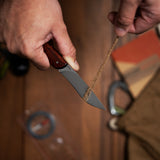 The Woodsman II is a no-nonsense, straight-to-the-point utility knife with a sculpted Burmese Dalbergia wood handle.