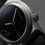 • Strap:  Black polyester strap with custom titanium PVD buckles