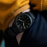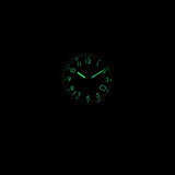 A tough titanium trooper that outshines its peers, especially in the dark - utilizing powerful C3 lume and a jet black colorway that gives off Matrix code vibes, the Venture Green Dusk is fully automatic and features a four o'clock date window. Lightweight yet menacing, its tough PVD-coated titanium case and matching date window is built to handle any terrain like a pro, come rain or shine.