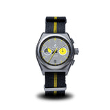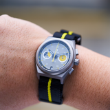 Powered by the reliable Japanese SII VK64 Mecaquartz movement, the full titanium case and snug NATO strap provide both durability and comfort. Combining rugged performance with sleek style, the Venture Rally Wells is built for those who demand precision and resilience on the race track and beyond.