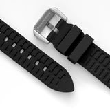 Upgrade your watch with our 20mm FKM rubber strap, engineered for explorers who demand performance in every environment. Made from high-grade FKM rubber, this strap is far more than just comfortable—it’s built to withstand the elements. FKM rubber is known for its superior durability, heat resistance, and resistance to oils and chemicals, making it an ideal choice for outdoor adventures. Its smooth surface and quick-release pins let you switch out straps effortlessly, while the material’s robustness ensures your gear stays intact through rain, sweat, or sun. For BOLDR customers, this is the ultimate strap for rugged adventures and everyday wear alike.