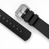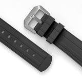Elevate your watch game with our new 20mm HNBR rubber strap featuring a unique train-line pattern and breathable design. Crafted from high-grade HNBR rubber, this strap offers resilience against heat, oils, and chemicals—perfect for both urban and rugged adventures. The train-line pattern adds style, while the ventilated underside ensures comfort and airflow. With quick-release pins, swapping straps is a breeze, and the durable construction stands up to all conditions. This strap is ideal for those who demand performance, style, and comfort in every setting.