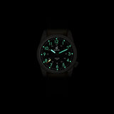 • Strap: NATO Canvas strap with solid titanium buckle with etched logo
