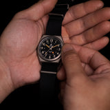 - Strap: Nylon NATO Strap with custom titanium buckles