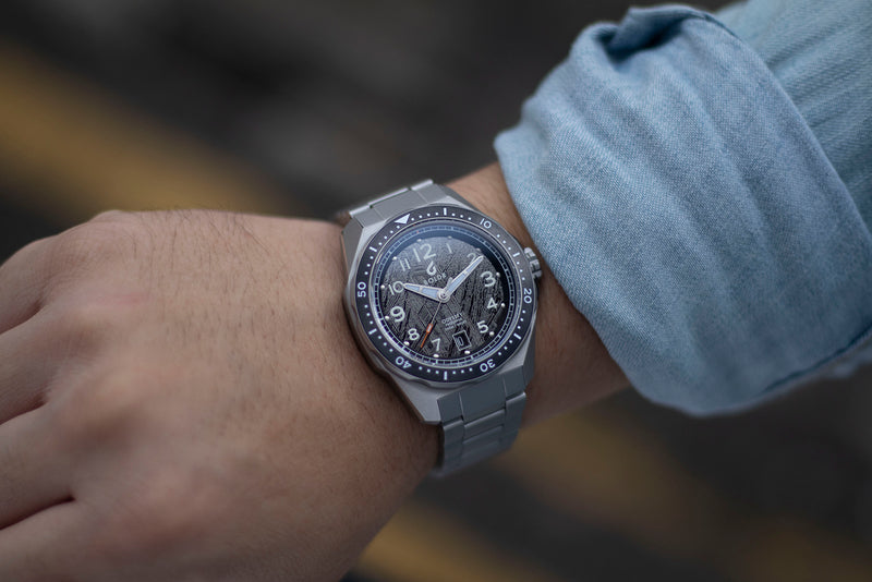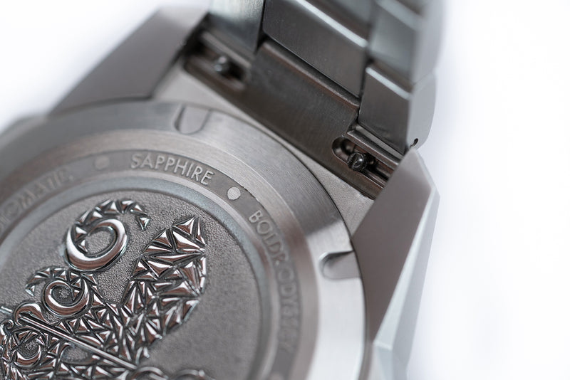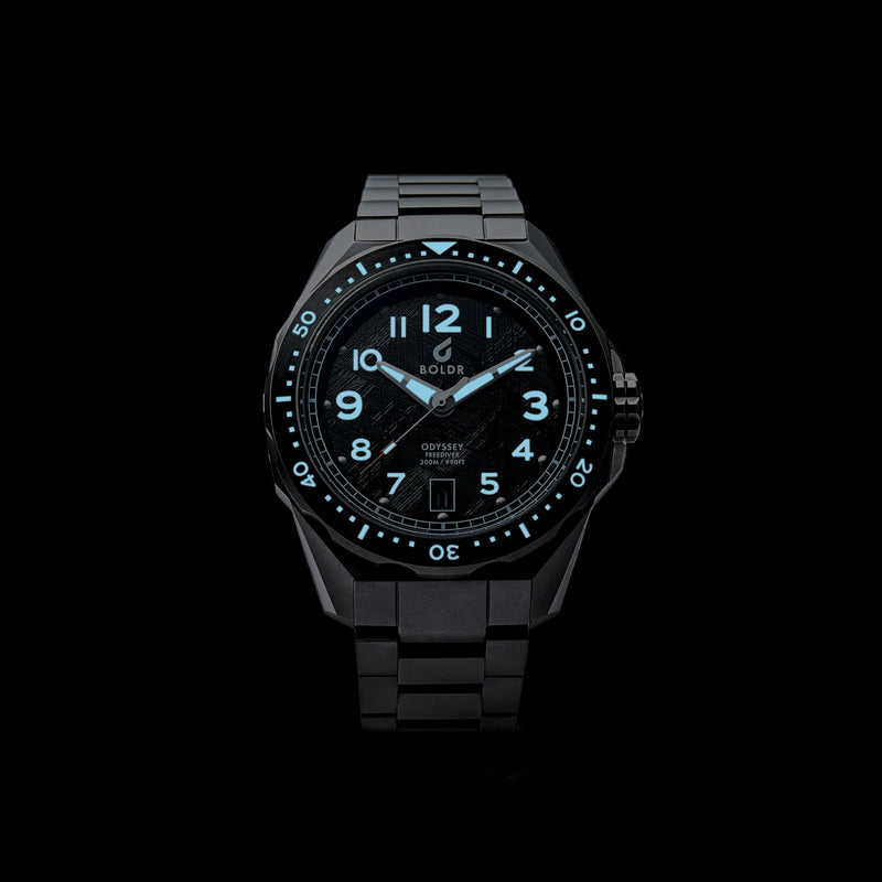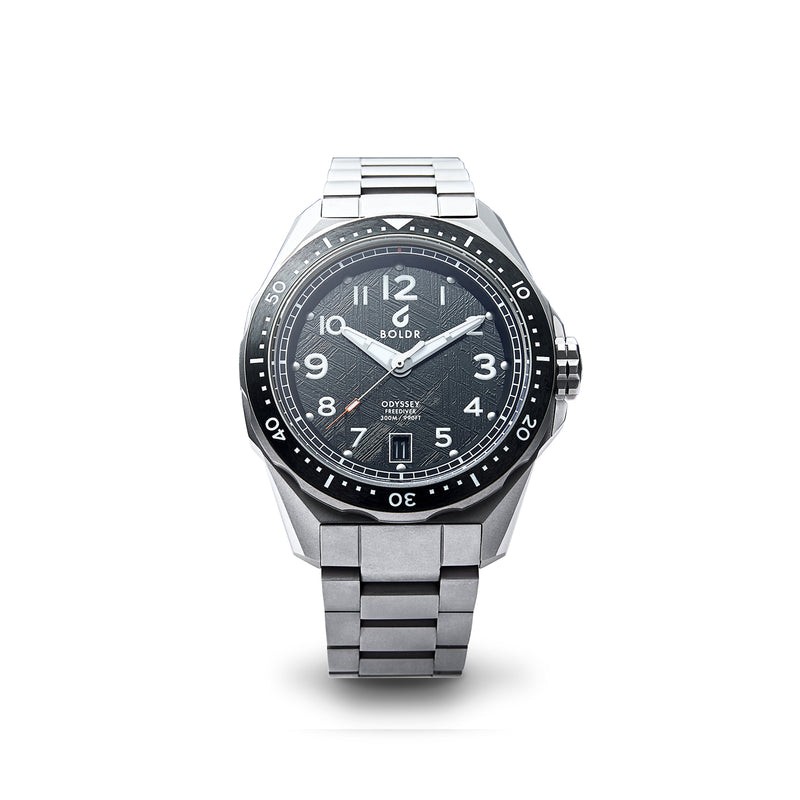 A watch of many ‘firsts’, this is the first BOLDR timepiece to possess a full 316L metal bracelet with a quick release spring bar, along with a refined case detailed with a polished strip to accentuate its angular lugs. The dive-friendly unidirectional bezel is made from high quality ceramic, known for its ability to withstand scratches and long-lasting nature.
