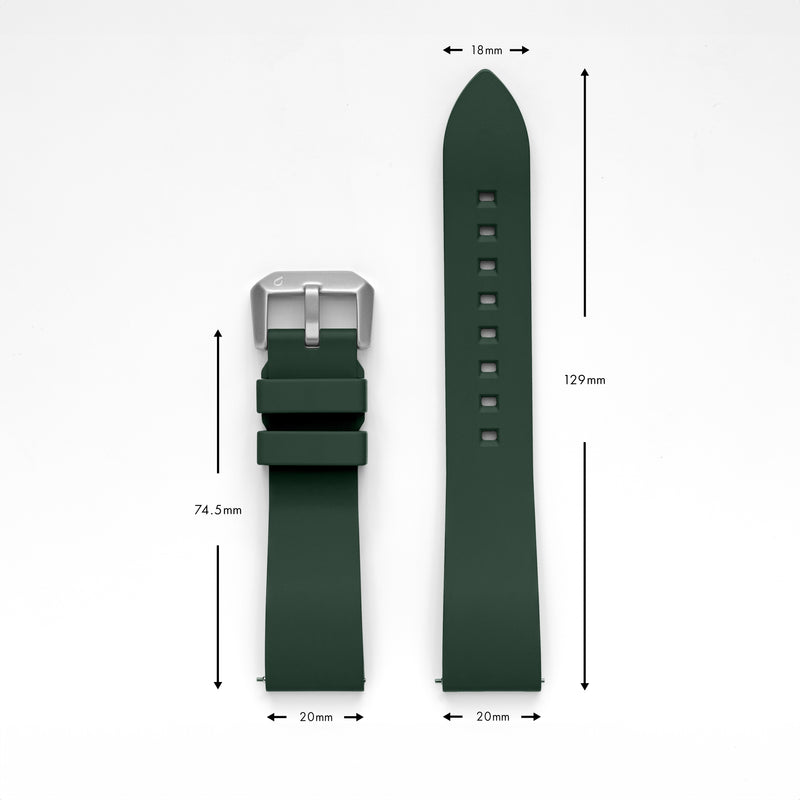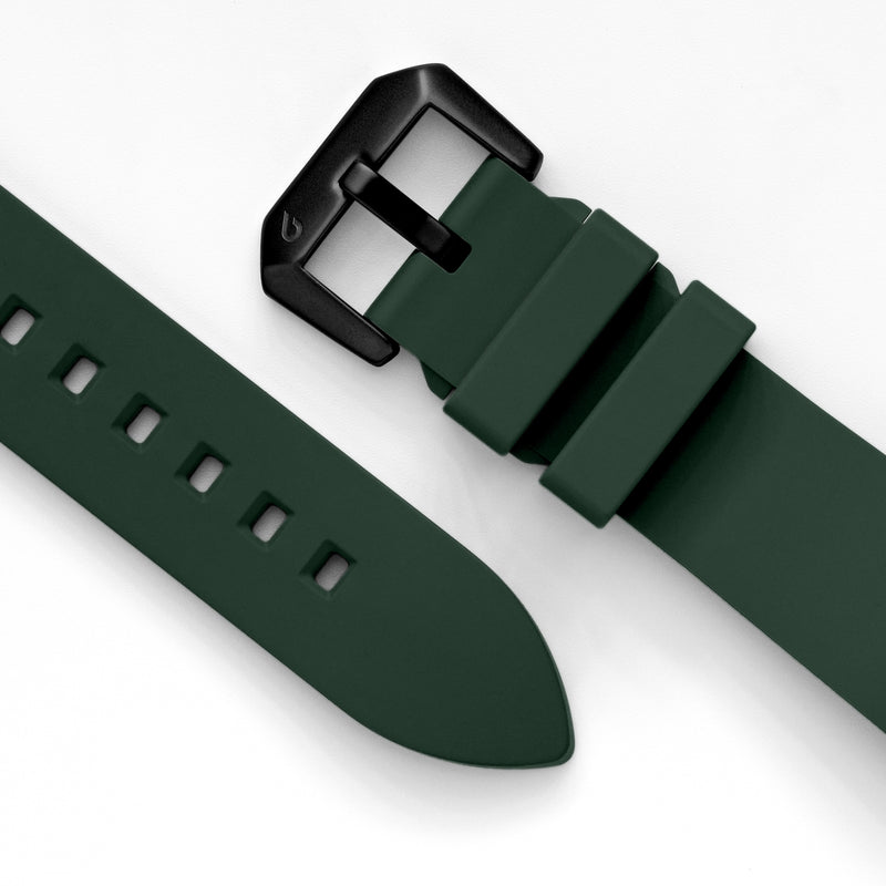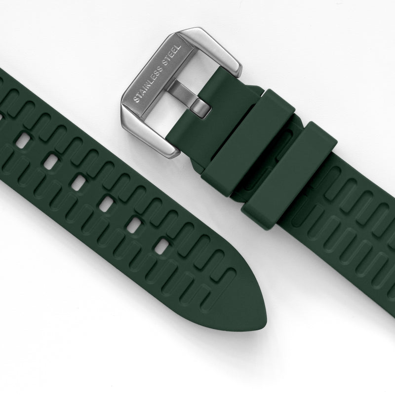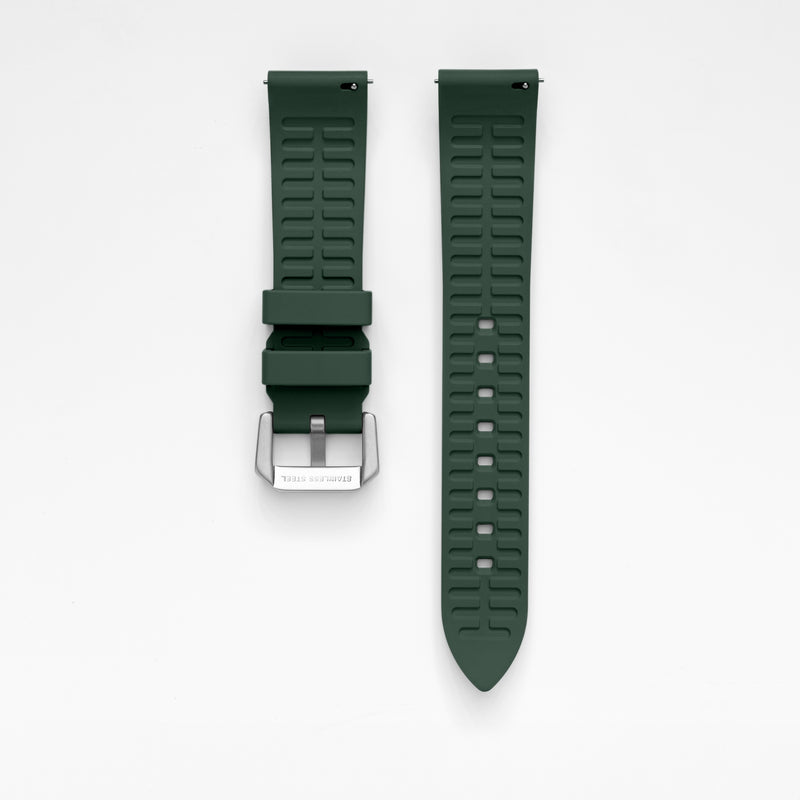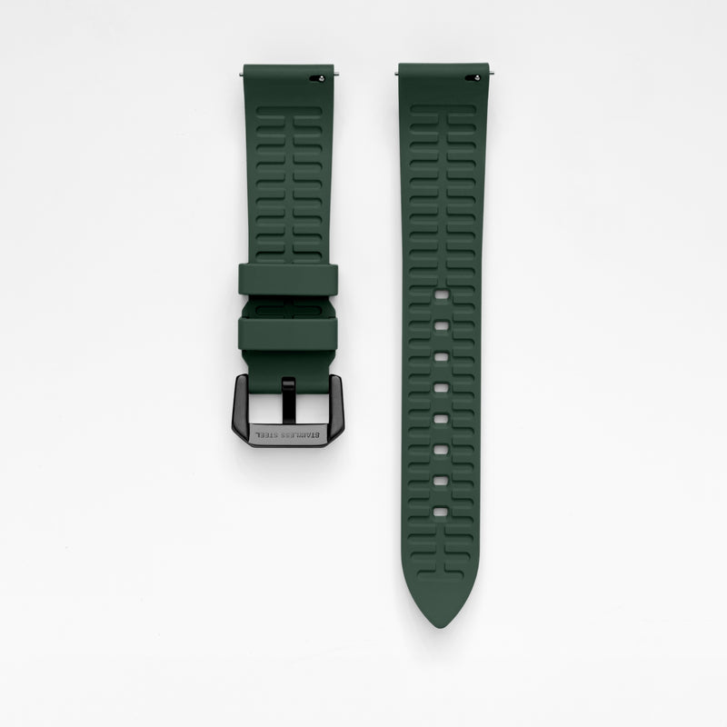 Upgrade your watch with our 20mm FKM rubber strap, engineered for explorers who demand performance in every environment. Made from high-grade FKM rubber, this strap is far more than just comfortable—it’s built to withstand the elements. FKM rubber is known for its superior durability, heat resistance, and resistance to oils and chemicals, making it an ideal choice for outdoor adventures. Its smooth surface and quick-release pins let you switch out straps effortlessly, while the material’s robustness ensures your gear stays intact through rain, sweat, or sun. For BOLDR customers, this is the ultimate strap for rugged adventures and everyday wear alike.