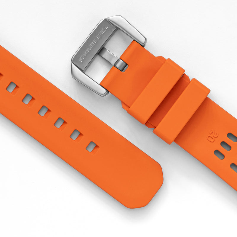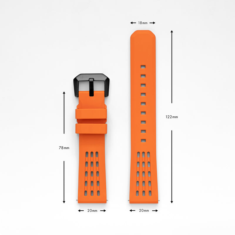 1Meet the Airstream—our 20mm FKM rubber strap engineered for breathability and performance. With a unique perforated design, this strap maximizes airflow, keeping your wrist cool and comfortable, no matter where your adventures take you. Crafted from high-grade FKM rubber, it’s built to resist wear from sun, heat, and chemicals, making it perfect for both rugged outdoor escapades and everyday wear. Quick-release pins make switching straps effortless, so you can gear up fast. Experience comfort, durability, and breathability all in one stylish strap with the Airstream.