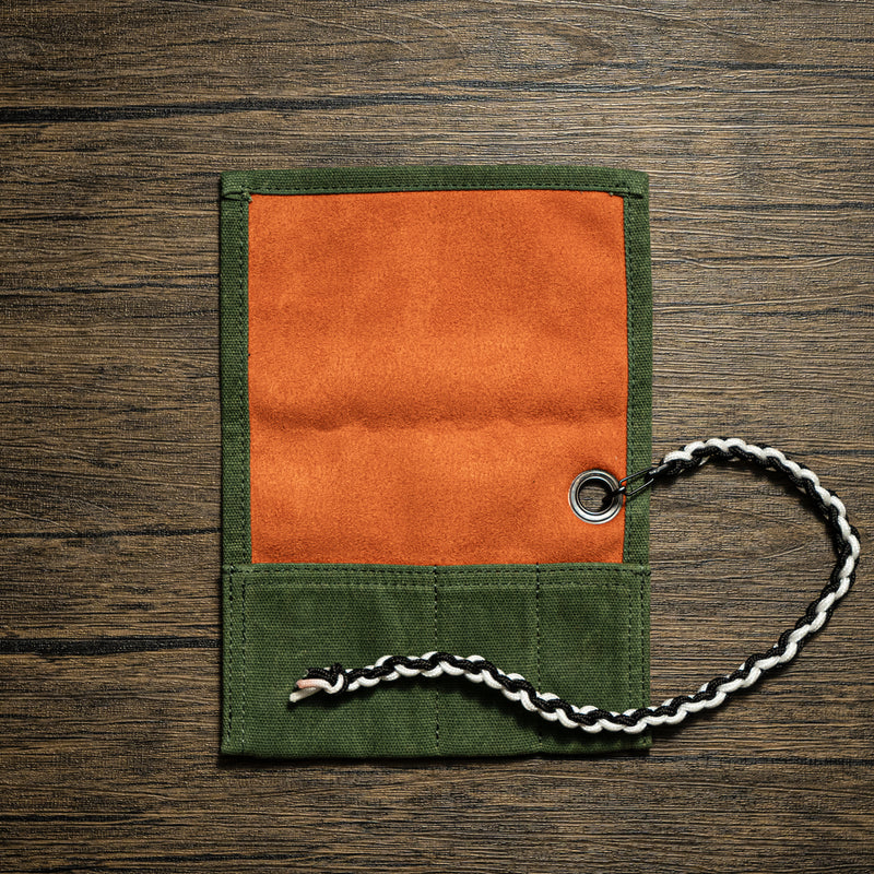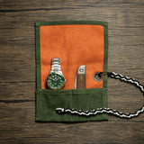 This single watch roll is crafted from durable waxed canvas with a soft felt interior to protect your valuables. It features one watch pocket and two accessory pockets, secured with a sturdy braided string. Built for style, durability, and practicality.