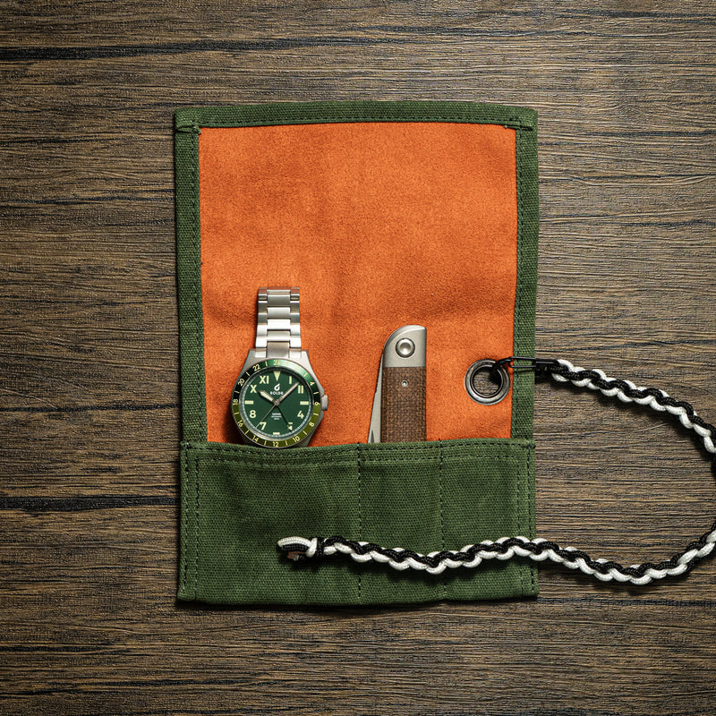 Note*: Dye transfer can happen due to friction, particularly when light and dark-colored fabrics are in contact or when the fabric becomes wet from rain or sweat. To prevent this, we recommend keeping your watch roll dry at all times.