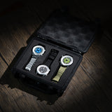 Give your watches a rugged, eco-friendly home with our upcycled case. Designed to fit up to three watches, the custom EVA foam insert ensures a snug and secure fit while seamlessly integrating with the current BOLDR impact-resistant case.