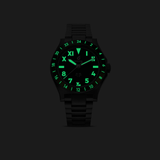 Crafted from tough stainless steel, this 40mm compact powerhouse is built for adventure. Its fixed dual-tone bezel, graduated for 24 hours, allows you to track two time zones simultaneously—a perfect feature for travelers and explorers alike.