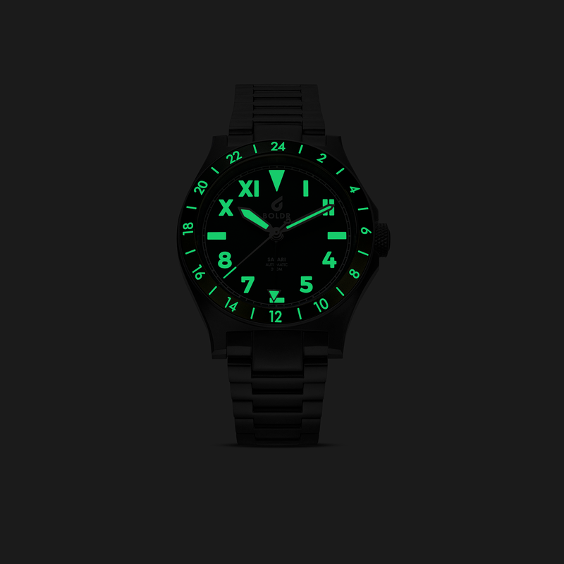 - Bezel: Fixed steel with aluminium 2-tone insert with Japan LumiNova®