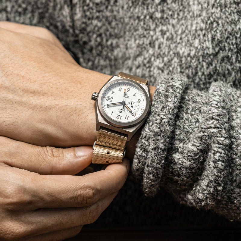 The Wayfarer is our tribute to classic 24-hour sub-dial watches housed in a sturdy titanium Venture case. Back when mobile phones were non-existent, 24-hour sub-dial watches were worn mostly by miners, explorers, submariners, and the like - jobs that could not rely on sunlight to know the actual time of day.
