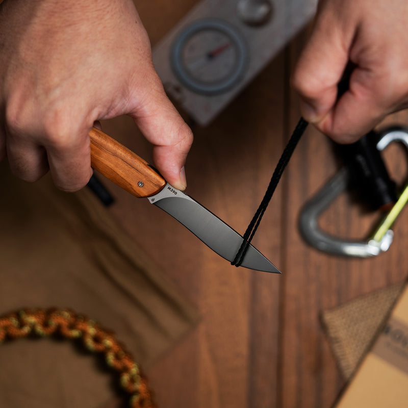 Extremely handy for anything from slicing open packages smoothly to hacking away at wild branches to make firewood, its BÖHLER M390 steel blade is highly durable and practically rust-resistant.