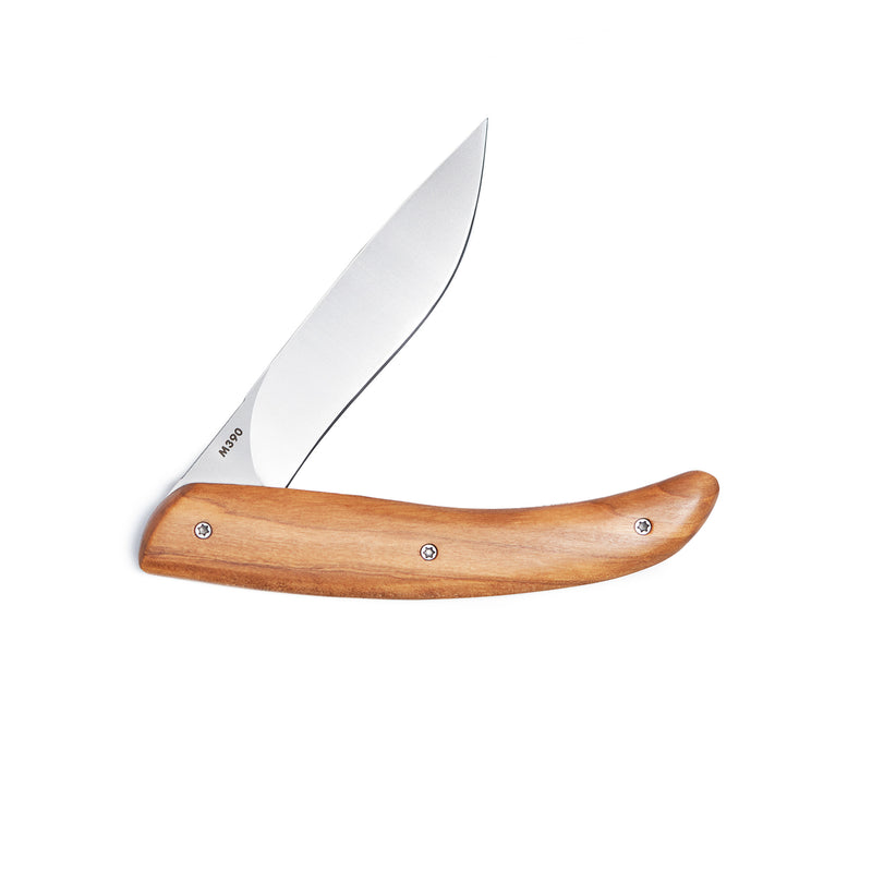 The Woodsman I is a no-nonsense, straight-to-the-point utility knife with a handsome European olive wood handle. Offering a non-bulky, snug grip and a liner lock system, the knife opens & folds with ease and stores away easily when not in use.